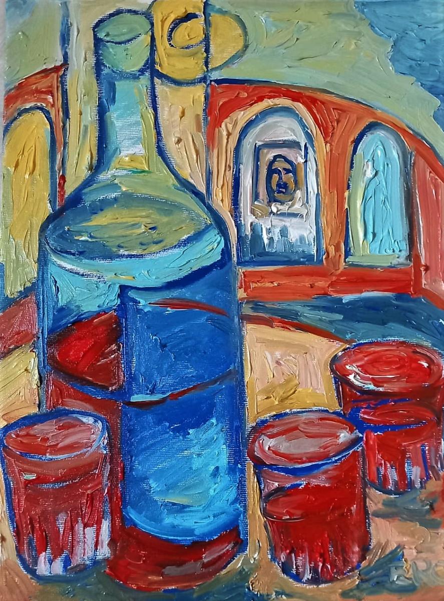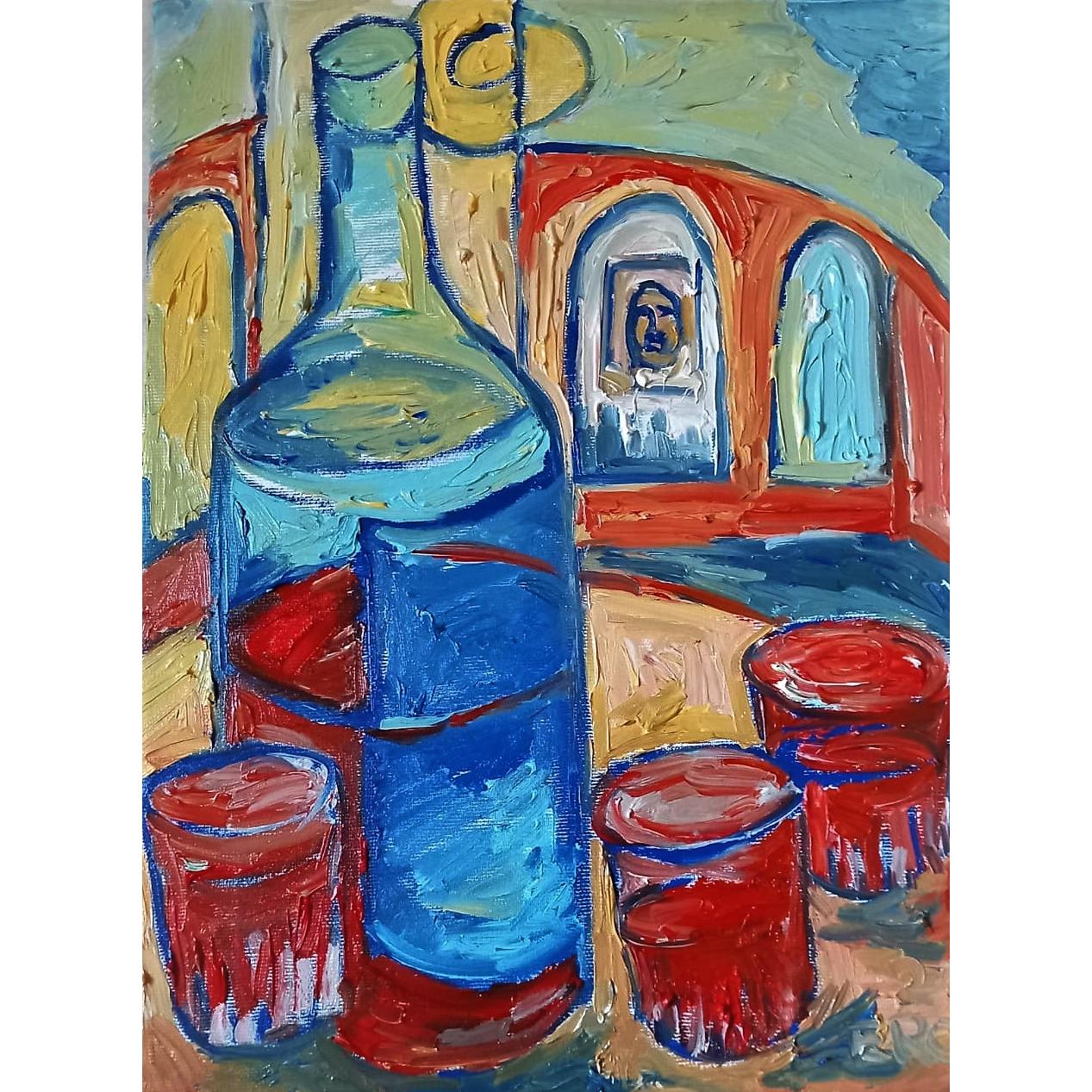 NATURA MORTA CON BOTTIGLIA E BICCHIERI