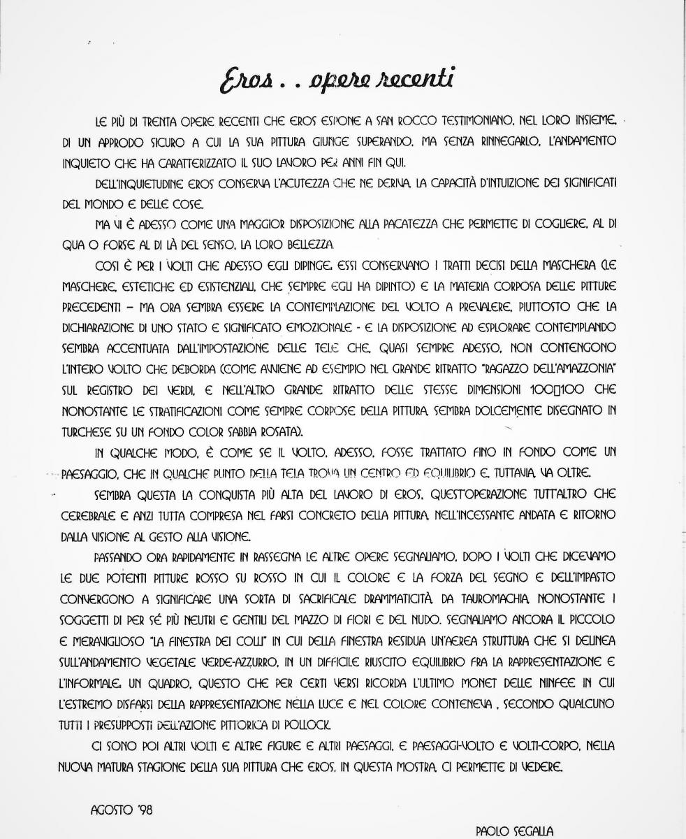 Questa bella recensione mi è stata scritta in occasione della mostra che ogni anno in estate faccio a S. Rocco .Per me è un appuntamento imprescindibile dove presento gli ultimi lavori